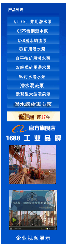 天津潛水電泵制造商關(guān)鍵字:井用潛水泵,大流量潛水泵,深井泵,熱水潛水泵,高揚(yáng)程潛水泵,軸流泵,污水泵,